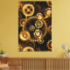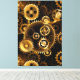 Seamless, metal, brass, gold gears on rusty dark background. Steampunk style.