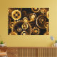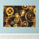 Seamless, metal, brass, gold gears on rusty dark background. Steampunk style.