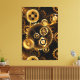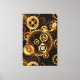 Seamless, metal, brass, gold gears on rusty dark background. Steampunk style.