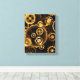 Seamless, metal, brass, gold gears on rusty dark background. Steampunk style.