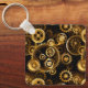 Seamless, metal, brass, gold gears on rusty dark background. Steampunk style.