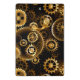 Seamless, metal, brass, gold gears on rusty dark background. Steampunk style.