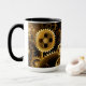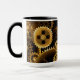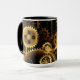 Seamless, metal, brass, gold gears on rusty dark background. Steampunk style.