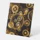 Seamless, metal, brass, gold gears on rusty dark background. Steampunk style.
