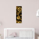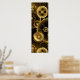 Seamless, metal, brass, gold gears on rusty dark background. Steampunk style.