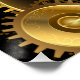 Seamless, metal, brass, gold gears on rusty dark background. Steampunk style.