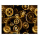 Seamless, metal, brass, gold gears on rusty dark background. Steampunk style.
