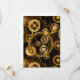Seamless, metal, brass, gold gears on rusty dark background. Steampunk style.