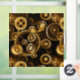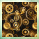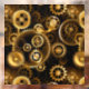 Seamless, metal, brass, gold gears on rusty dark background. Steampunk style.