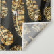 Seamless texture pattern of glowing golden feathers. Ethnic pattern in zentangle style with abstract ornament. Texture of gold foil. Art deco style.