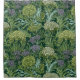 Seamless William Morris style wallpaper pattern featuring dense green foliage and large, rounded flowers in shades of lime green, off-white, and muted lavender against a dark emerald background.