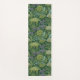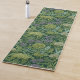 Seamless William Morris style wallpaper pattern featuring dense green foliage and large, rounded flowers in shades of lime green, off-white, and muted lavender against a dark emerald background.
