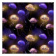 Seamless pattern of bright, golden, purple, artistically drawn, glowing jellyfish on black sea background. Glowing jellyfish.
