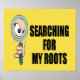 This funny genealogy poster features a big eye in the magnifying glass, the caption "Searching For My Roots".