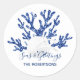 Seas and Greetings Beach Christmas Navy Blue Classic Round Sticker
