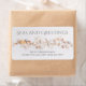 Seas And Greetings Simple Modern Beach Seashell Holiday Shipping Labels features the text "Seas and Greetings" in modern gray script accented with seashells and twine. Personalized with your family name and return address by editing the text in the text boxes provided. Designed by ©Evco Holidays www.zazzle.com/store/evcoholidays