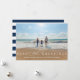 "Seas and Greetings" nautical themed Christmas holiday card. Card features elegant calligraphy "and" with navy blue and white stripe pattern backing.
