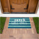 Seas and Greetings door mat in a light and dark aqua stripe.