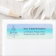 Cette étiquette d'adresse de retour de vacances sur le thème de la plage a l'expression "Seas & Greys" en forme d'arbre de Noël, avec un arrière - plan de plage aquarelle abstrait.
