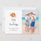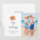 Hand painted watercolor seashell and coral 'Seas and greetings" Nautical Holiday greetings card. Add your favourite family photo.