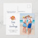 Hand painted watercolor seashell and coral Nautical Holiday Postcard . Add your favourite family photo.