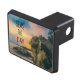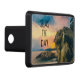 A custom trailer hitch with a beach background and inspirational quote.
