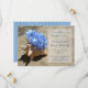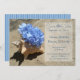 Pretty blue hydrangea on the beach. Save the date for your destination wedding.