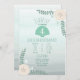 Une invitation à la fête d'anniversaire avec un arrière - plan à l'ombre d'aqua avec des illustrations d'étoiles de mer, d'algues, de fleurs et de dollars de sable en haut à droite et en bas à gauche avec coquillage au centre. Personnalisez le texte.