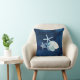 Seashell Beach House Navy Coral Nautilus Starfish Throw Pillow