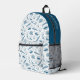 Seashell backpack. Blue shells on white background. Customize with your own name or choice of text. Matching items available. Original art from artists own illustrations. Please use the message me button below for help with further customization and special requests. © Zoe Chapman Design