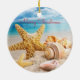 Seashells on a white sandy beach Christmas tree ornament.