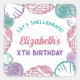 Let's shelle-brate! Girly seashell birthday with shells in shimmering purple, vibrant teal and pearly pink