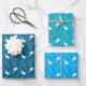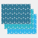 A set of three pretty wrapping paper sheet in shades of blue with the line art pattern of a seashell . Perfect for any summer celebrations .