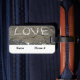 This luggage tag features a nature-inspired design ideal for travel, with seashells from the ocean arranged on a shoreline to spell out the word 'love', adding a charming accent. Customize as desired.