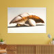 A mesmerizing piece of art that blends the delicate beauty of a seashell with the earthy charm of a mushroom. This unique and surreal canvas print features a large, flowing shell cap poised gracefully over a smaller, ribbed seashell, creating a striking visual metaphor.