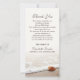 Beautiful thank you card for a memorial service featuring a seashell lying at the shore of a quiet beach.