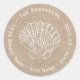 This classy circular address label is decorated with stylish white seashell image and sand texture background. The circular design makes it perfect as an envelope seal.