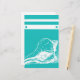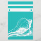 Cute scrapbook paper for your beach projects that features a white seashell outline on a blue background with white stripes and polka dots across the top.