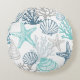 Seashell Starfish Pattern Blue And Teal Round Pillow