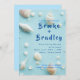 beautiful and Fun Blue Wedding Invitation with scattered seashells. Perfect for beach weddings, destination weddings, summer weddings or weddings with a seashell wedding theme.