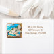 Beach themed return address labels. Seashells and blue water sandy beach.