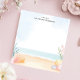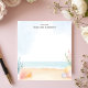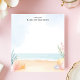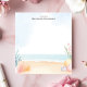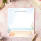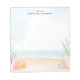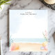 Escape to the shore with this calming, personalized notepad. A serene beach scene, complete with sand, gentle waves, seashells, and subtle greenery, decorates the bottom edge. The soft, pastel colours evoke a sense of tranquillity. Customize this notepad with your own text for a personal touch. Perfect for jotting down vacation plans, beach house notes, or everyday reminders.