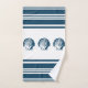 It was advertised as NAVY blue and the color sent was greenish blue. I am disappointed in this product. Quality and printing are great as are all my other orders. As you can see in picture the tea towel on right is perfect, hand towel not so much! Print was awesome and just as ordered