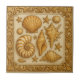 A meticulously detailed collection of various seashells and starfish, rendered in rich, sepia-toned hues that suggest antique charm. Each shell, from the classic scallop to the intricate conch and spiralled nautilus, is brought to life with remarkable precision. The central design is elegantly framed by an ornate, scrolled border, giving the entire tile a refined and sophisticated presence. Perfect for adding a touch of classic coastal elegance or vintage appeal to any home decor. An ideal piece for those who appreciate natural forms and a rustic, yet refined, aesthetic.