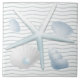Soft bluish grey starfish, seashells, and an open oyster with a pearl....all over a background of the shadows of overlying ocean waves.
