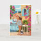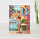 This elegant greeting card features a dreamy Mediterranean balcony scene with a woman overlooking the sea, framed by blooming flowers and sailboats. A perfect design for relaxation, wanderlust, and thoughtful moments—ideal for sending warm wishes with a touch of coastal charm. Original artwork by Caroline Bonne Müller.