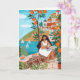Share a peaceful moment with this beautifully illustrated greeting card featuring a woman enjoying coffee by the Mediterranean sea. With citrus trees, coastal architecture, and calming ocean views, this design evokes relaxation, travel dreams, and simple pleasures. Original artwork by Caroline Bonne Müller.