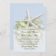 Seaside elegant tropical themed wedding invitations. Light blue with a big white starfish and white hydrangea flower. Use to invite guests to a summer wedding or ceremony by the sea in any climate.