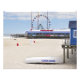 Seaside Heights beach in New Jersey with it's popular ferris wheel and signature rescue boat. Home of MTV's Jersey Shore reality TV show. Forego