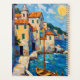 A quaint seaside village in Europe with a sailboat ready to go.